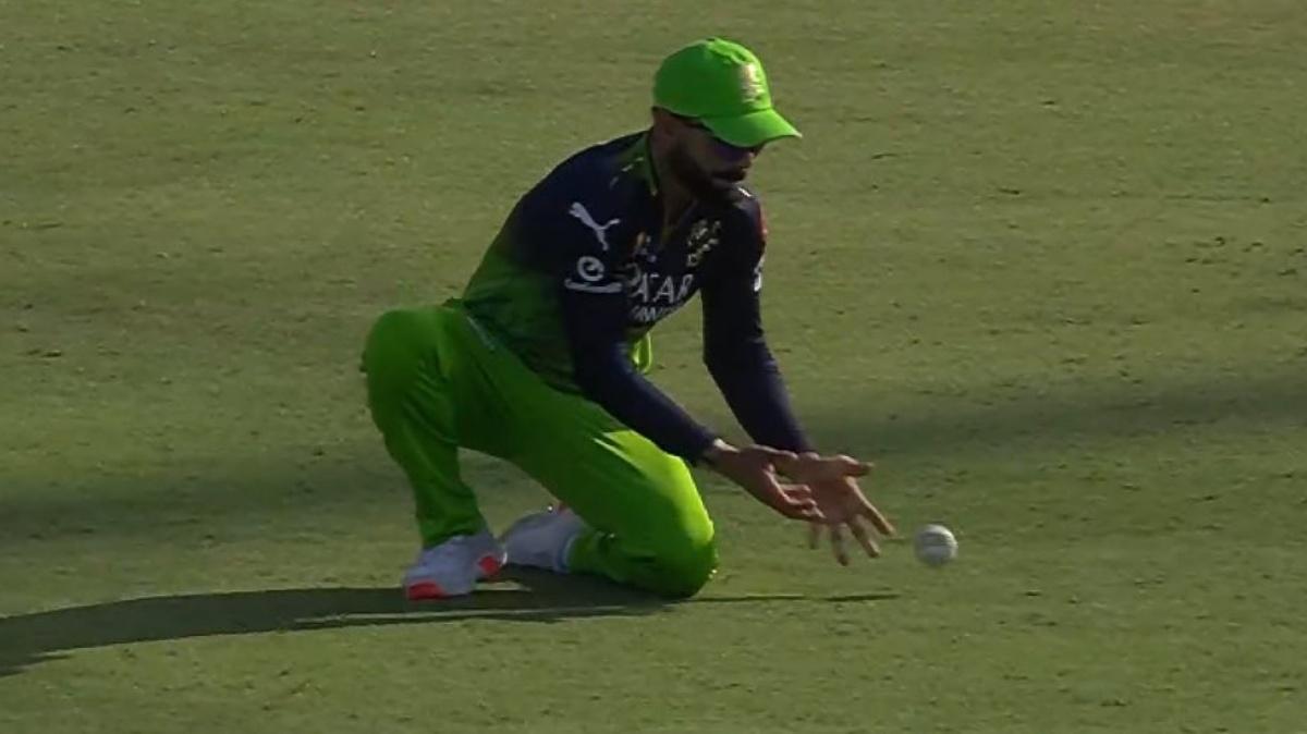 On just 7, he chipped a regulation chance to Riyan Parag, who grassed it -- a huge miss that denied Sandeep Sharma the distinction of dismissing Kohli eight times in T20s. The RCB maestro made full use of the reprieve, cruising to an unbeaten 62 off 45 balls.