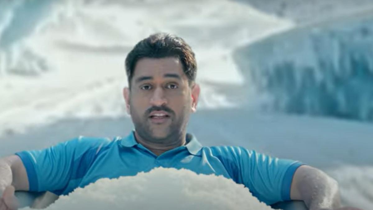 In a striking departure from his trademark calm demeanor, Dhoni appears in an unexpected avatar — seated in a bathtub filled with ice against a snowy landscape, yet visibly sweating under immense pressure.