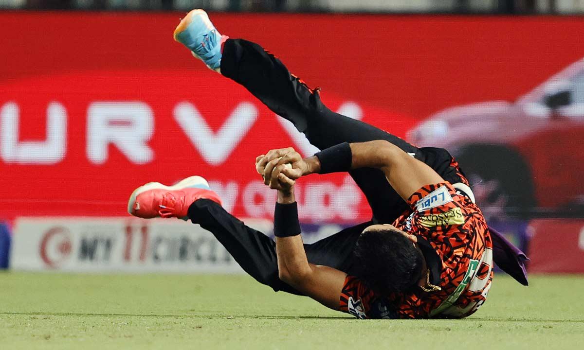 Harshal took a fine running catch to dismiss the free-flowing Angkrish Raghuvanshi off Kamindu Mendis's bowling.