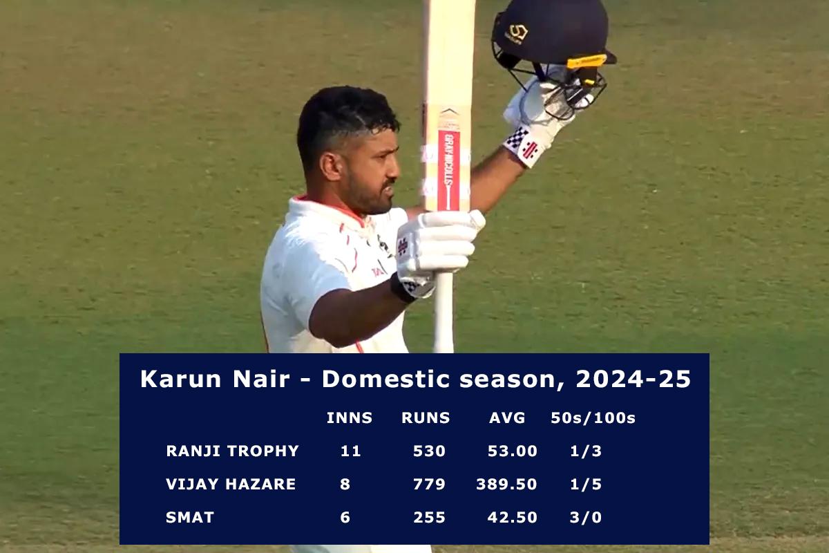 Nair was favourite to make a comeback to the national team after tallying 752 runs and averaging 389.50 in the Vijay Hazare Trophy, this season.