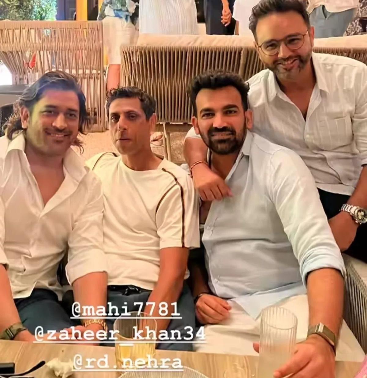In a heartwarming reunion, former Indian cricket captain Mahendra Singh Dhoni caught up with former tea-mmates Zaheer Khan, Parthiv Patel and Ashish Nehra, creating a nostalgic buzz among fans.