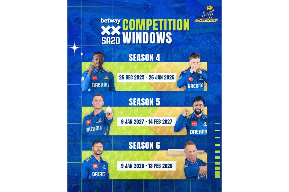 SA20 and Cricket South Africa on Monday formalised the window of the lucrative franchise-based tournament for the next three years in order to "bring certainty" to stakeholders and also help the national team plan its international calendar in advance.
