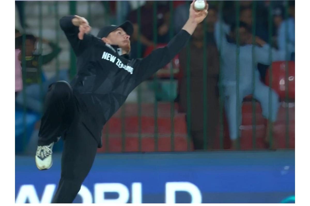 Phillips manning the field at point took an outrageous catch to take out Pakistan captain and opener Muhammad Rizwan for 3.