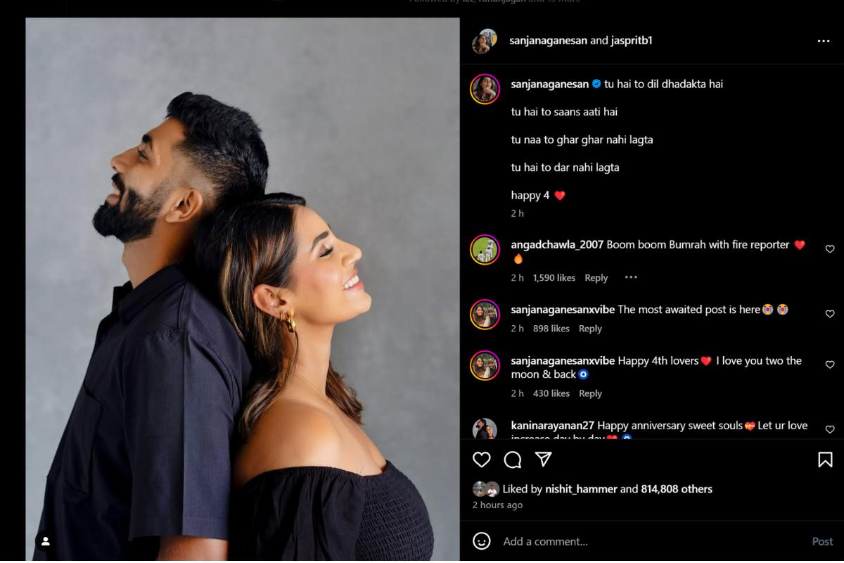As the Bumrahs turned 4 on Saturday, March 15, Mrs Bumrah took to Instagram to wish husband Jasprit on their anniversary.