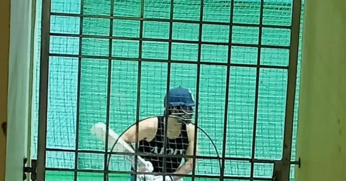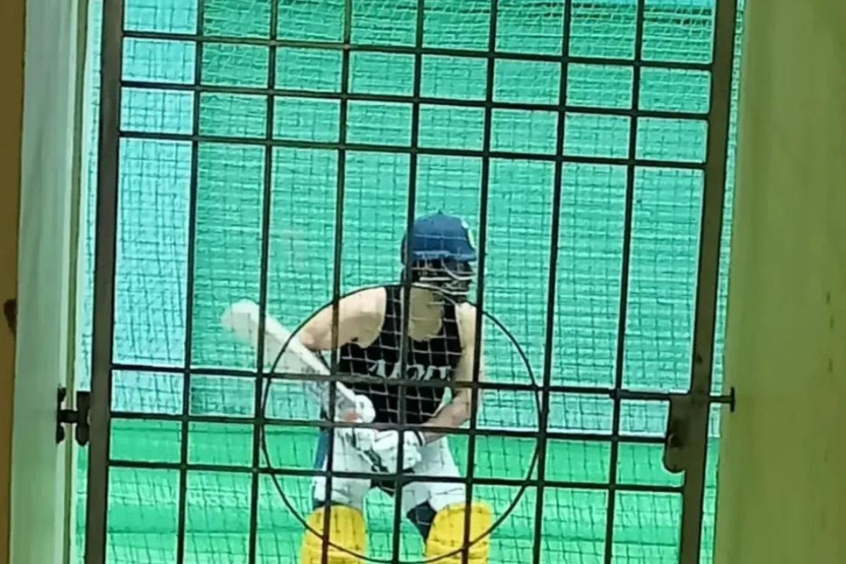 The 43-year-old Chennai Super Kings star was seen doing some batting drills in an undisclosed neighbourhood.
