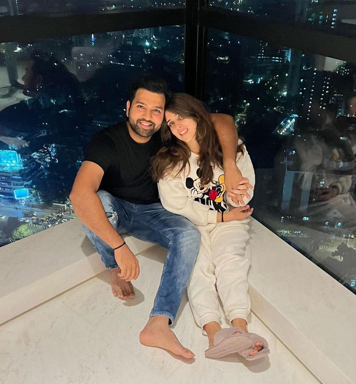 'My home,' Rohit captioned the picture on Instagram with wife Ritika Sajdeh as the couple spent a relaxed winter evening at their Mumbai home.