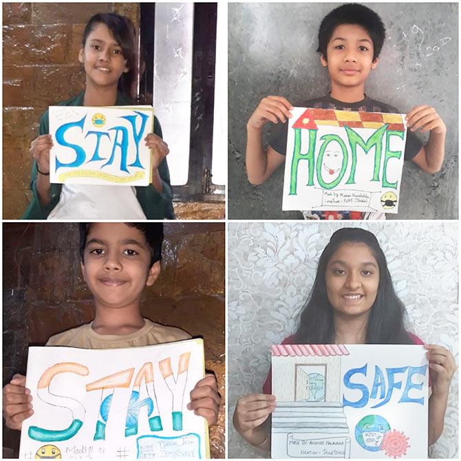 Manas Nawalakha, 12 from Pune, Maharashtra did this interesting photo collage with his cousins to explain the importance of social distancing.