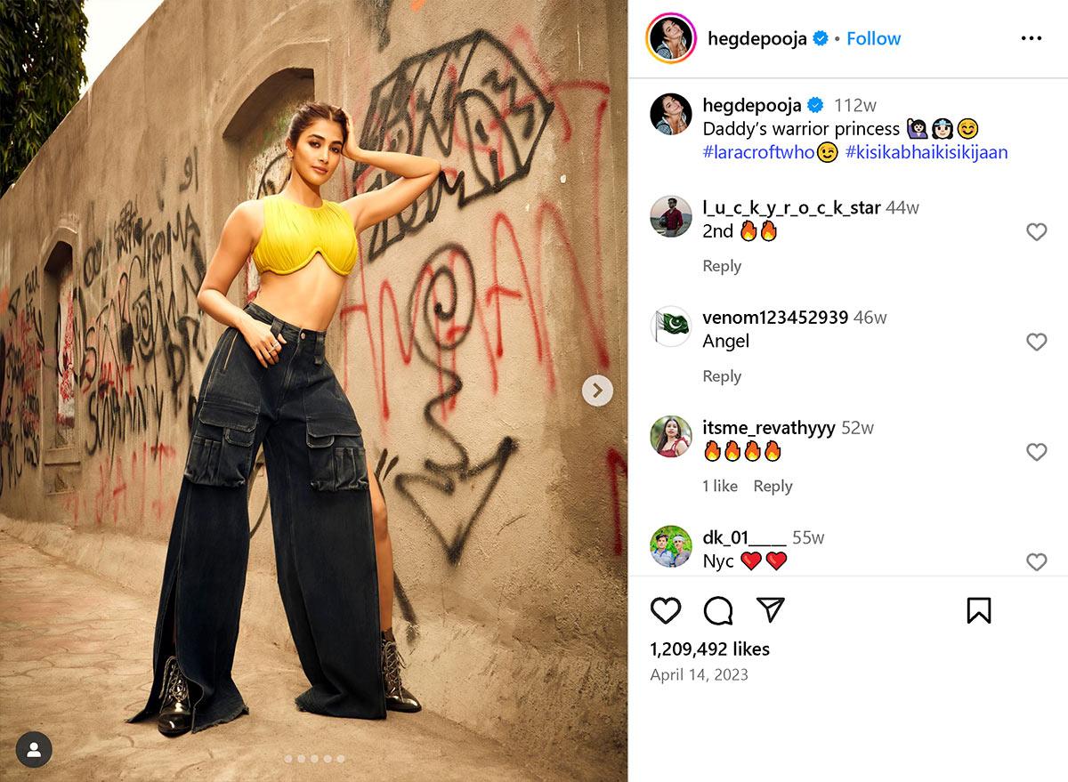 IMAGE: Pooja Hegde is pocketful of sunshine in her yellow corset, wide-legged pants featuring daring slits and fierce metallic tie-up boots. Photograph: Kind courtesy Pooja Hegde/Instagram