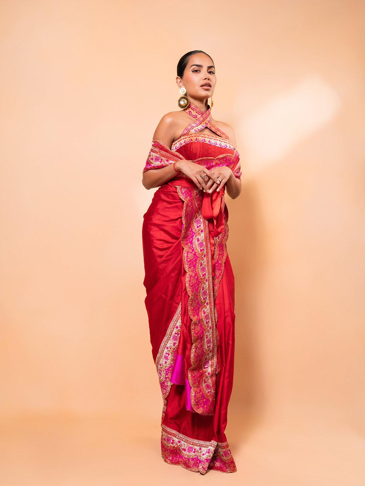 Diipa Buller-Khosla, who was named the luxury content creator of the year, wore an unusual satin-silk Banarasi sari with a cheongsam-inspired blouse, delivering drama with every drape.