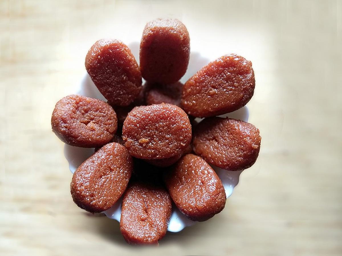 The plump sweet is made from fresh chhena, a kind of soft paneer and is often flavoured with cardamom and garnished with nuts. It is a part of the bhara or the gift-set of sweets, the bride takes for her in-laws' place after marriage.