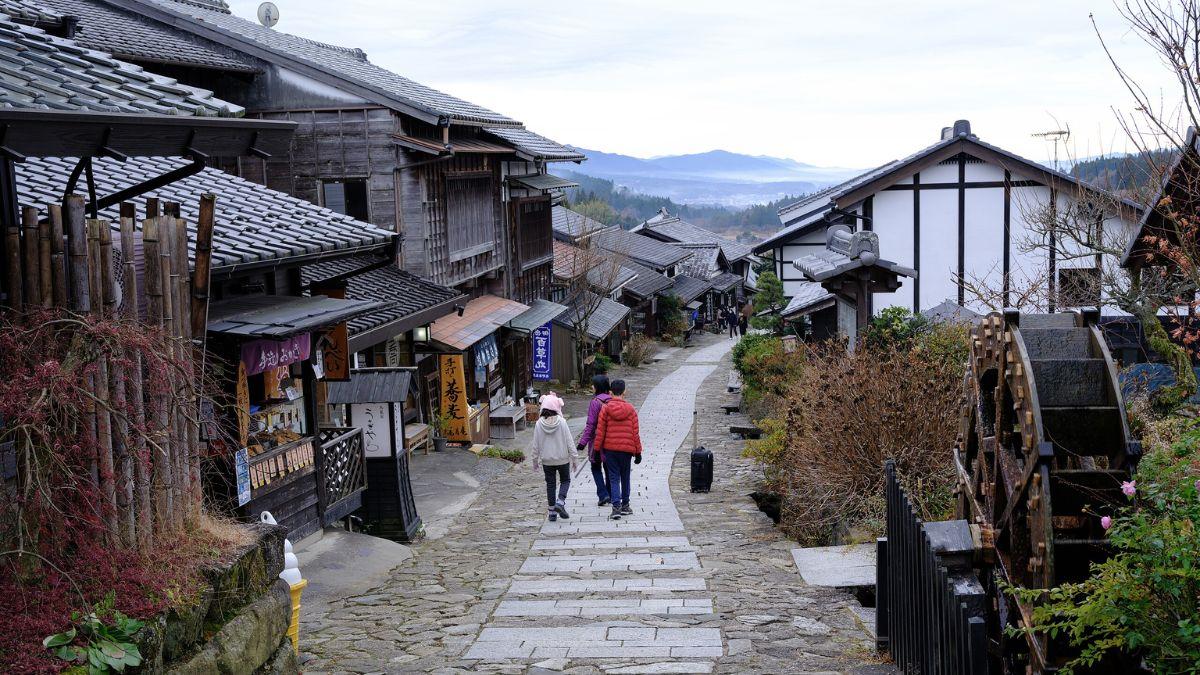The route passes through calm rural stretches and eventually leads towards the lovely Kiso Mountains.