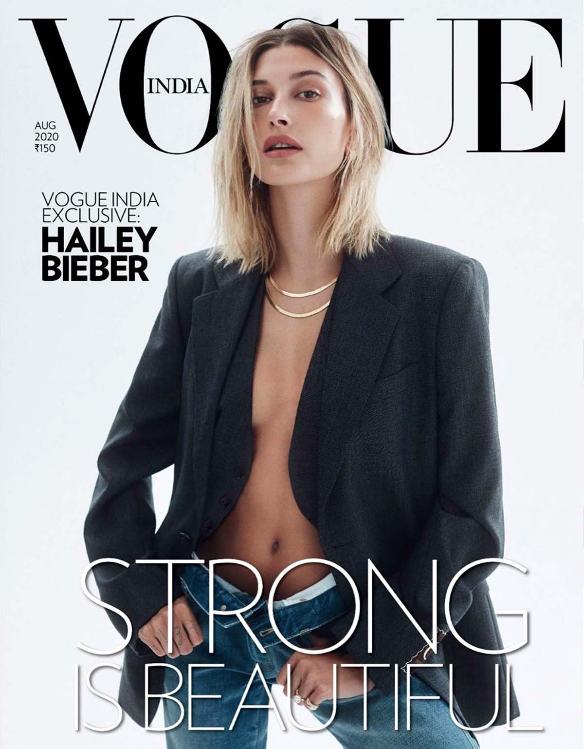 American model Hailey Barber is on the cover of Vogue India's August issue.