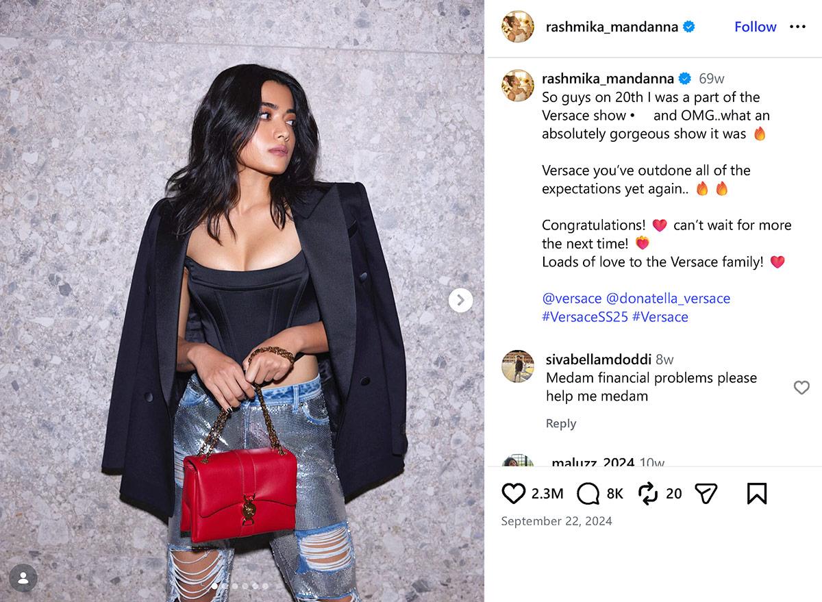 IMAGE: Rashmika Mandanna’s corset and metallic denim combo is your go-to for a casual but flirty evening. Photograph: Kind courtesy Rashmika Mandanna/Instagram