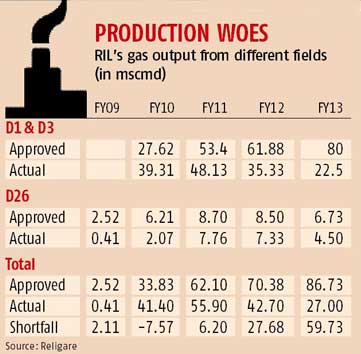 This implies there might not be a price revision for gas from RIL’s KG-D6 field from April 2014 onwards,” Religare said in a report released on Thursday.