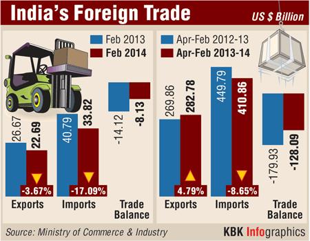 Oil imports in February declined 3.1 per cent to $13.69 billion.