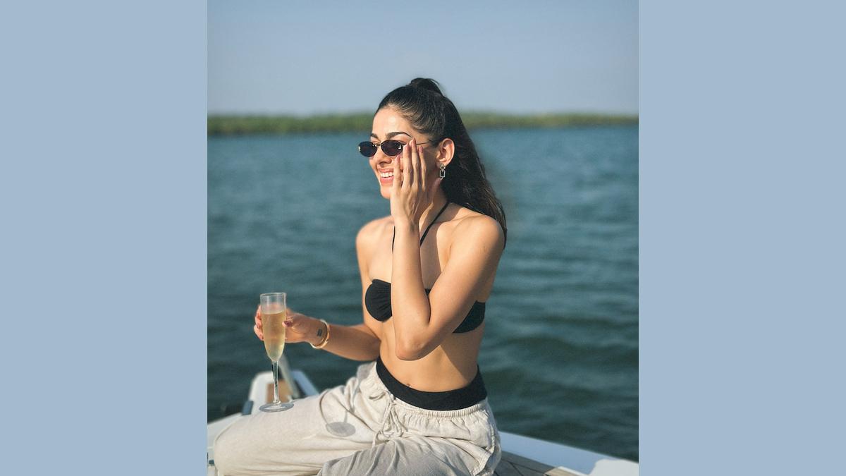 'Bikinis, bubbles & boat days. Always the bestttt time with @konkanexplorersindia,' she writes.