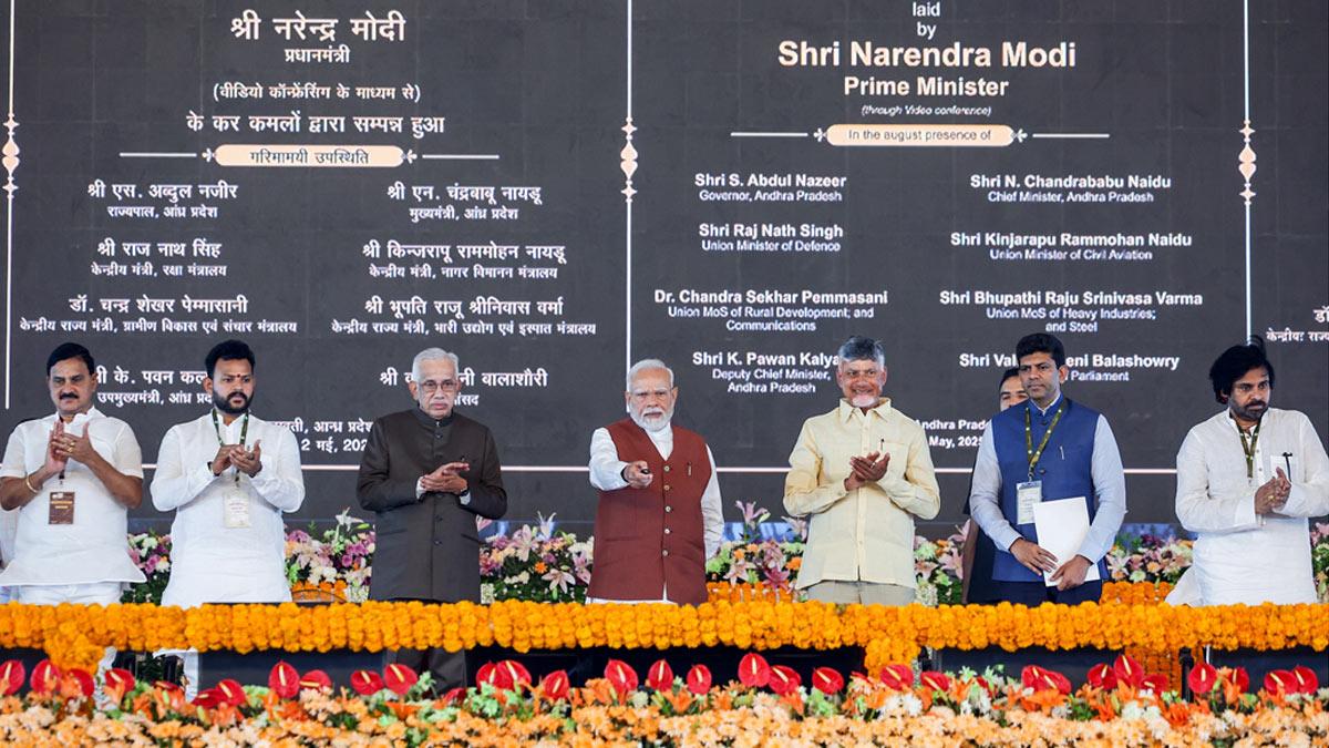 Giving a fresh lease of life to Andhra Pradesh's dream capital project of Amaravati, Prime Minister Narendra Modi on Friday laid the foundation stone and inaugurated multiple development projects worth over Rs 58,000 crore (Rs 580 billion) for the state.