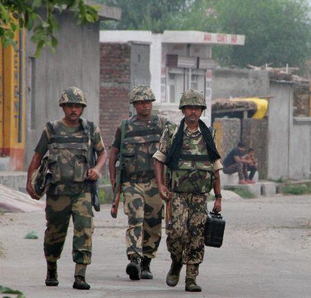 Image: Indian BSF troops after the ceasefire violation from Pakistan side in Pargwal village. Photograph: PTI