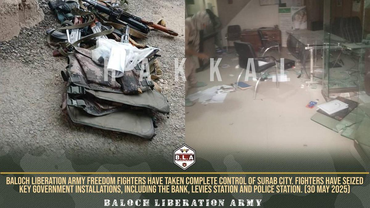 According to a statement released by BLA spokesperson Jeeyand Baloch, freedom fighters launched a coordinated operation on the evening of May 31, taking over major military, administrative, and financial facilities of the Pakistani state in Surab. The operation lasted for more than three hours.