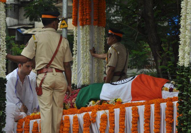 Kamat's body was wrapped in the tricolour and was taken to the crematorium in the suburb in a flower-bedecked vehicle.