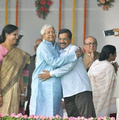 The Delhi chief minister faced flak from various quarters for hugging Lalu, a convict in the fodder scam, at the oath-taking ceremony of Kumar on November 2O. Expelled AAP leader Yogendra Yadav described it as a "shameful" act.