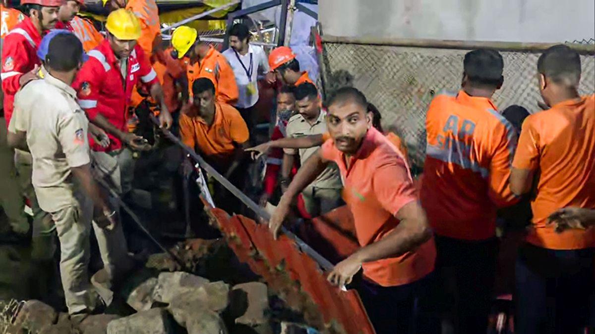 Home Minister Anitha said heavy overnight rains and strong winds are suspected to have loosened the soil, causing the wall to give away.