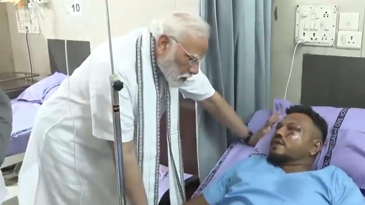 Modi later visited Ahmedabad civil hospital, where he spoke to Vishwas Kumar Ramesh, the lone survivor of the tragedy and met the injured victims.