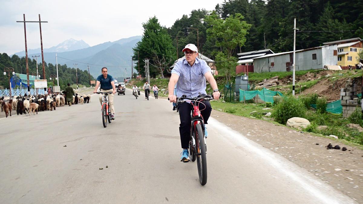 The visit to Betaab Valley was followed by an impromptu cycling tour by the chief minister from a local hotel to Nunwan Base Camp and back, to promote new initiatives taken by Tourism Department towards sustainable tourism.