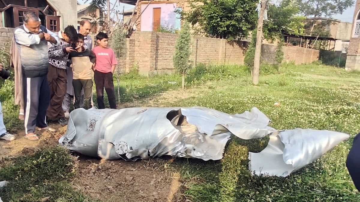 IMAGE: Locals inspect a wreckage in Pampore near Srinagar in the aftermath of 'Operation Sindoor', May 7, 2025.. Photograph: Umar Ganie for Rediff.com