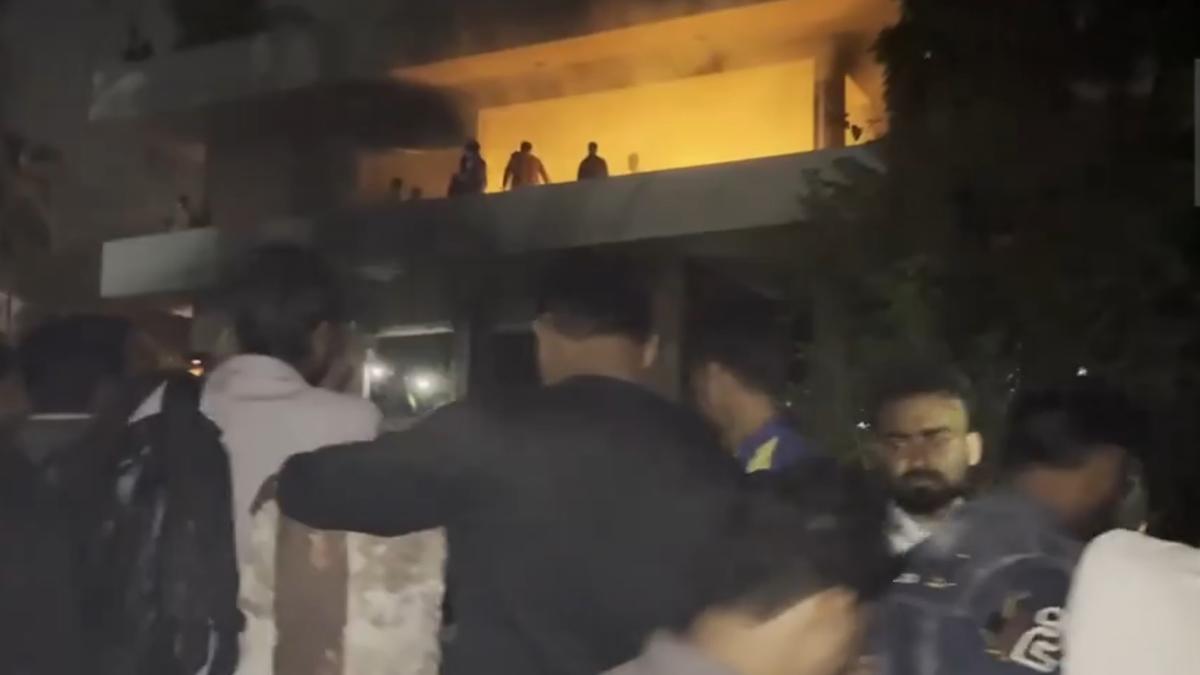 A large group of protesters on Wednesday vandalised and set on fire Bangladesh founder Sheikh Mujibur Rahman's residence in Dhaka during a live online address of his daughter and deposed prime minister Sheikh Hasina.