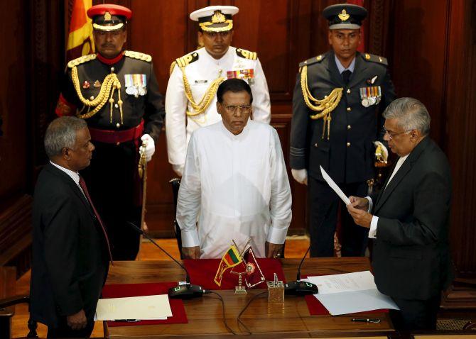 Sirisena, who was Rajapaksa's Health Minister, was asked by Wickremesinghe in November last year to become the opposition common candidate. Sirisena was promptly sacked by Rajapaksa for challenging him in the January 8 election. After Sirisena's victory, Rajapaksa stepped down to make way for the new President to take over the party. Analysts say Sirisena and Wickremesinghe are set to face major hurdles both at the international and domestic fronts. The UN Human Rights body is to release its report on Sri Lanka's war crimes accountability next month.