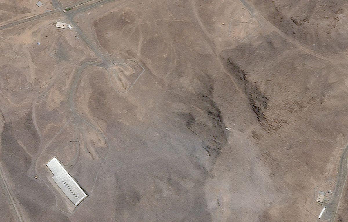 The imagery, captured by Planet Labs PBC on Sunday, indicates that the entry tunnels to the fortified site were targeted, with visible destruction at access points and possible impact on the mountain that houses the facility.