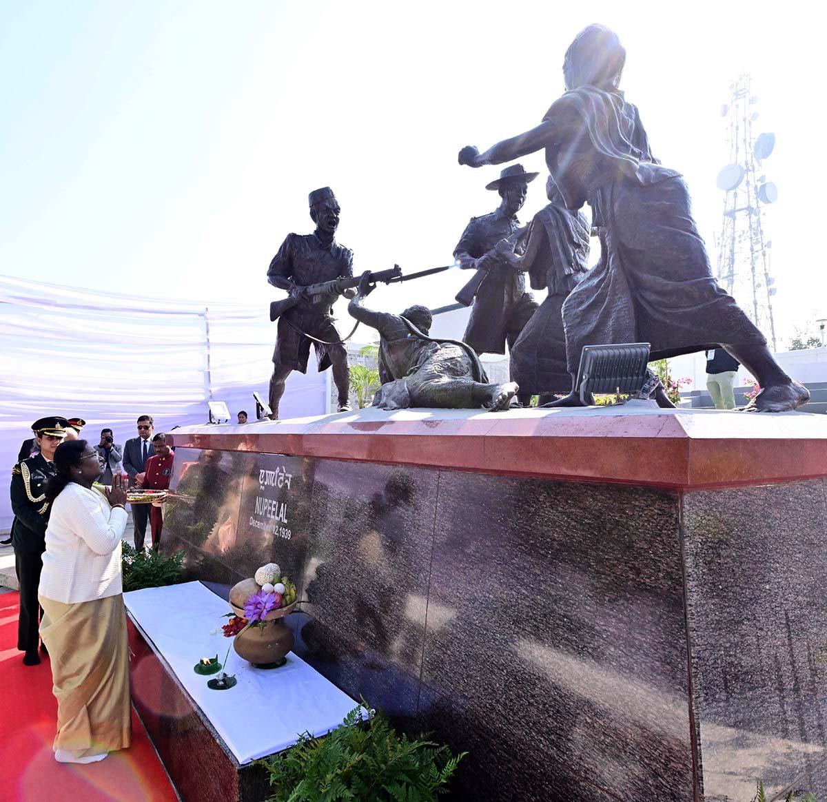 The memorial stands as a tribute to the sacrifice of Manipuri women and commemorates their uprisings in which they challenged the British and feudal powers with great courage. Photograph: @rashtrapatibhvn/X
