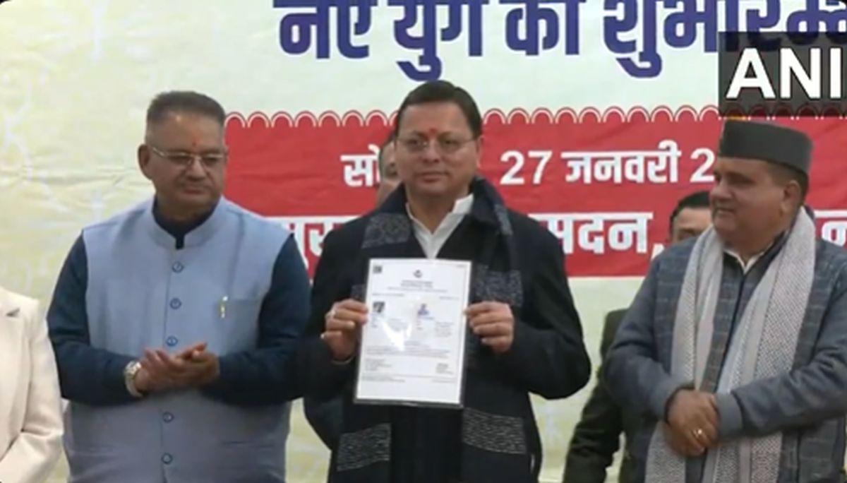 The chief minister was the first to register his marriage on the UCC portal. State Chief Secretary Radha Raturi handed over the certificate of his marriage registration to him.