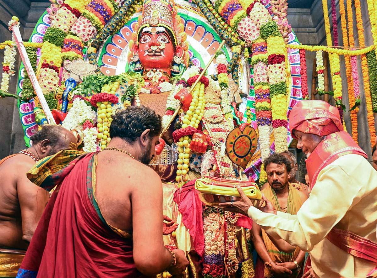 On Wednesday, May 21, 2025, Andhra Pradesh Chief Minister Nara Chandrababu Naidu and his wife Nara Bhuvaneshwari visited the Sri Prasanna Tirupati Gangamamba and offered silk garments on behalf of the Tirumala Tirupati Devasthanam at Ammavaru in Kuppam.