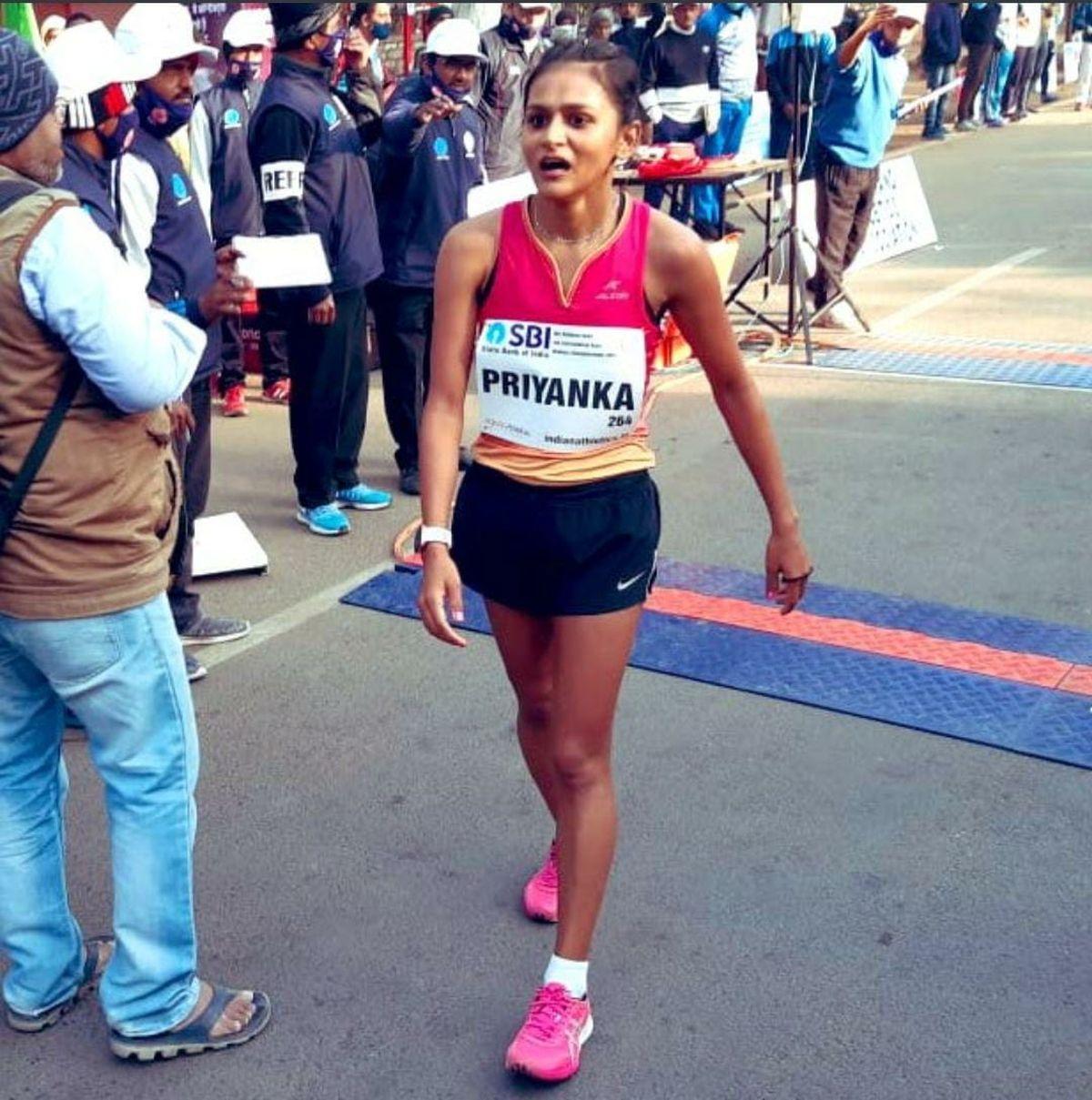 Commonwealth Games medallist race walker Priyanka Goswami set a national record in women's 35km event during the Dudinska 50 competition in Dudince, Slovakia.