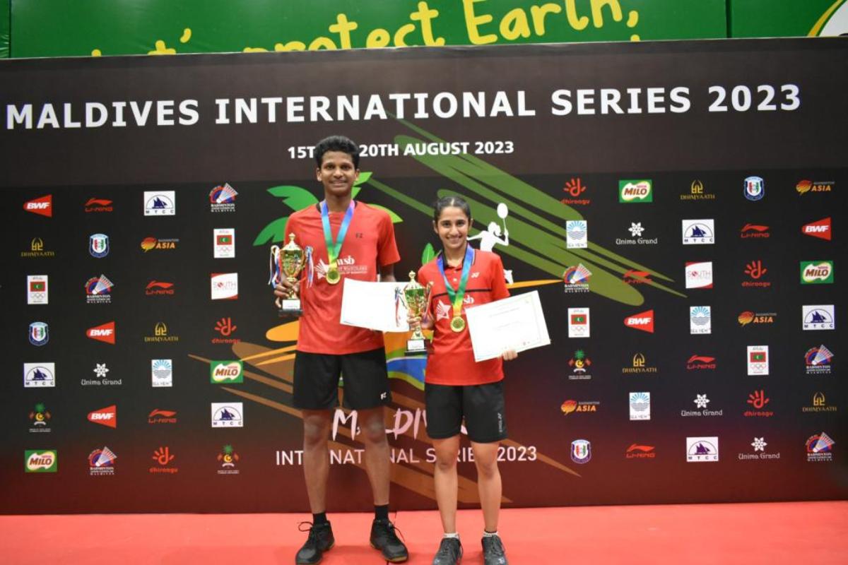 IMAGE: Sathish Kumar Karunakaran and Aadya Variyath won gold at the Maldives International Series in 2023, among one of their earliest wins as a pair. Photograph: Kind courtesy India in Maldives/X
