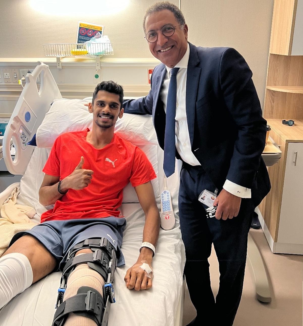 "The surgery was successful under Dr. Bruno Olory at the Aspetar Hospital, Doha. Thank you everyone for all your love and blessings during this tough phase. 18 hours post-surgery and I am already walking," wrote Sreeshankar on Instagram.
