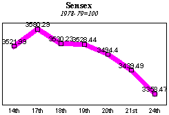 Reflecting the downtrend, the BSE sensitive index or sensex dropped below the 3400