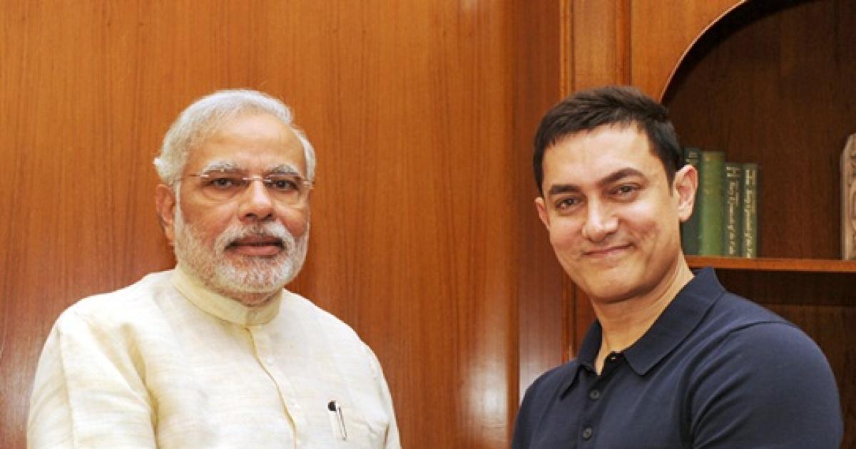 Image: Prime Minister Narendra Modi with Aamir Khan. Photograph, courtesy: Press Information Bureau