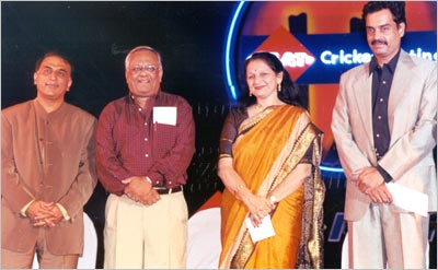 CEAT Awards 2000From left: Sunil Gavaskar, Erapalli Prasanna, Nirupama Mankad, daughter-in-law of Vinoo Mankad, and Dilip Vengsarkar were honoured as legends of Indian cricket on the occasion at the Brabourne stadium.Back Next |
