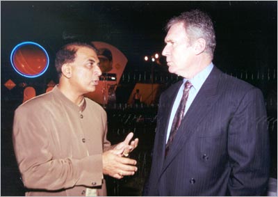 CEAT Awards 2000Sunil Gavaskar and Allan Border, who flew in to Bombay on behalf of the Australian team to accept the CEAT International team of the year award, discuss a cricketing point.Back Next |