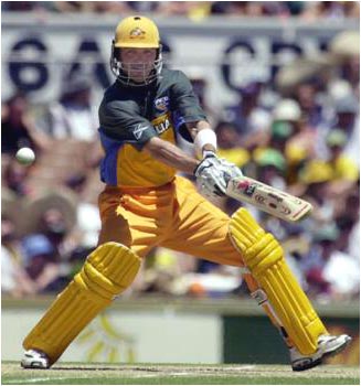 Damien Martyn cuts through point on his way to 144 not out.
