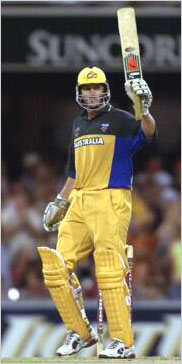 Old Waugh horseAdam Gilchrist (98) accepted the captaincy with eagerness and shared a devastating first-wicket partnership of 206 from 237 balls with Mark Waugh (112 not out) in 158 minutes as the home side cantered past the West Indies' score of 8/234 for the loss of only one wicket.Nick Wilson/ALLSPORT |