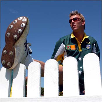 Speedster Brett Lee warms up before training in preparation for the first Test against New Zealand. The training session was held at the Allan Border Field in Brisbane.