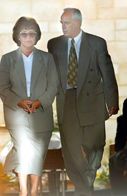 Ben's parents, Daria and John Hollioake arrive for funeral service.