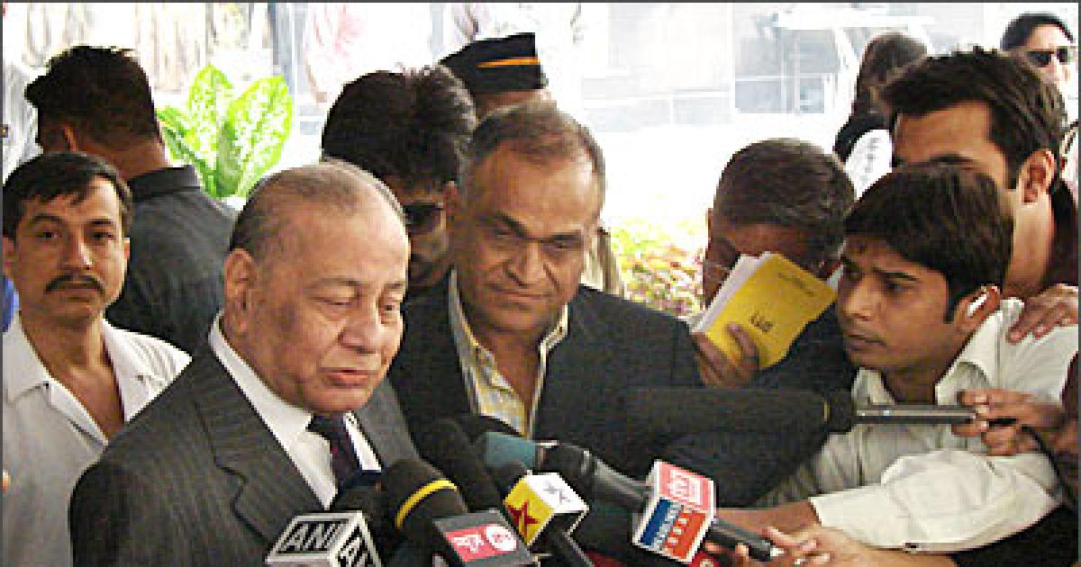 Image: Senior counsel VR Manohar and BCCI secretary Niranjan Shah address the media outside the BCCI headquarters in Mumbai on Tuesday.