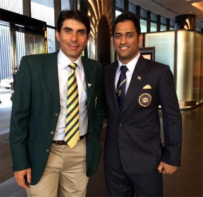 'Captains Together' Misbah Ul-Haq & MS Dhoni unite as they arrive at the #cwc15 opening ceremony in Melbourne," ICC tweets.