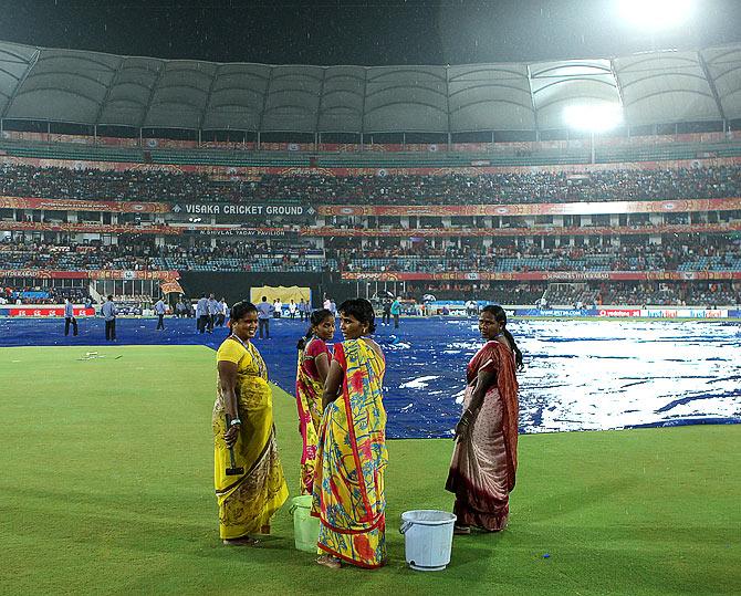 The rain stopped briefly for a few minutes and just as the groundstaff were about to take of the covers, it starts to drizzle yet again.