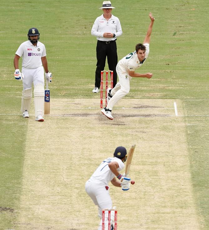 Cummins continues, Gill sends it to leg side for two quick singles. He defends the next three deliveries and steals a single. Rohit takes the last ball of the over on his pads. India 14-0 after 5 overs.